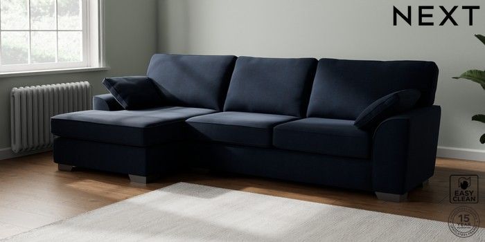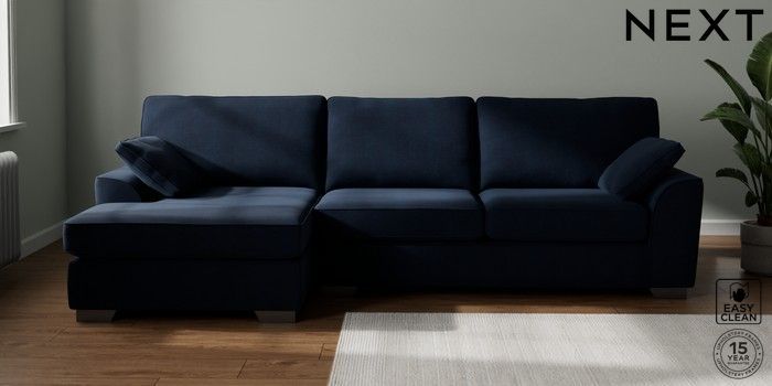 7.3.1 Buy Stamford Large Sofa Chaise - Left Hand Fine Chenille Easy Clean Dark Navy Blue Large Square Angle - Gunmetal from the Seasons online shop Click here to use our website with more accessibility support, for example screen readers