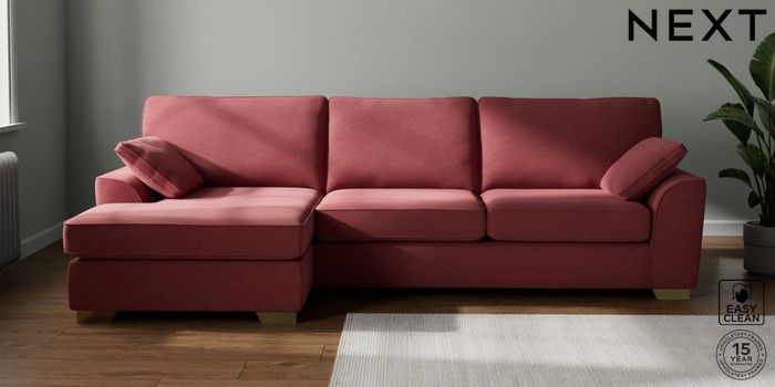 7.3.1 Buy Stamford Large Sofa Chaise - Left Hand Fine Chenille Easy Clean Mid Pink Large Square Angle - Brushed Brass from the Seasons online shop Click here to use our website with more accessibility support, for example screen readers