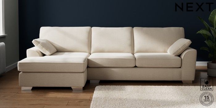 7.3.1 Buy Stamford Large Sofa Chaise - Left Hand Fine Chenille Easy Clean Oyster Large Square Angle - Chrome Metal from the Seasons online shop Click here to use our website with more accessibility support, for example screen readers