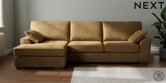 7.2.10 Buy Stamford Large Sofa Chaise - Left Hand Luxe Chenille Honey Yellow Large Square Angle - Mid from the Seasons online shop Click here to use our website with more accessibility support, for example screen readers