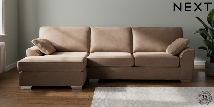 7.3.1 Buy Stamford Large Sofa Chaise - Left Hand Luxe Chenille Mid Natural Large Square Angle - Chrome Metal from the Seasons online shop Click here to use our website with more accessibility support, for example screen readers