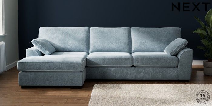 7.2.10 Buy Stamford Large Sofa Chaise - Left Hand Plush Chenille Light Blue Large Square Angle - Dark from the Seasons online shop Click here to use our website with more accessibility support, for example screen readers