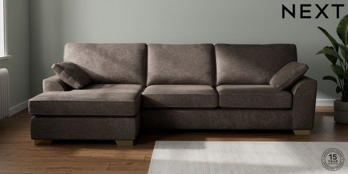 7.2.10 Buy Stamford Large Sofa Chaise - Left Hand Plush Chenille Mink Brown Large Square Angle - Brushed Brass from the Seasons online shop Click here to use our website with more accessibility support, for example screen readers