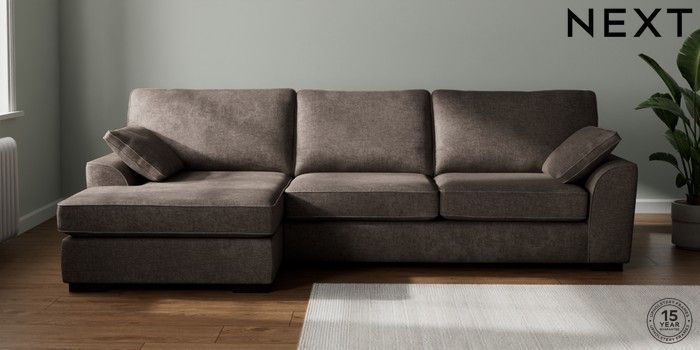 7.2.10 Buy Stamford Large Sofa Chaise - Left Hand Plush Chenille Mink Brown Large Square Angle - Dark from the Seasons online shop Click here to use our website with more accessibility support, for example screen readers