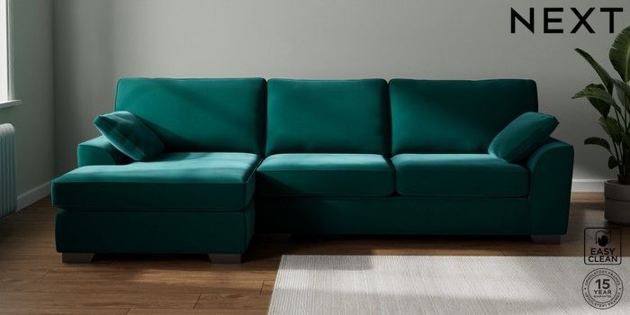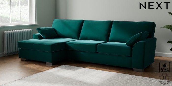 7.3.1 Buy Stamford Large Sofa Chaise - Left Hand Plush Velvet Easy Clean Juniper Green Large Square Angle - Gunmetal from the Seasons online shop Click here to use our website with more accessibility support, for example screen readers