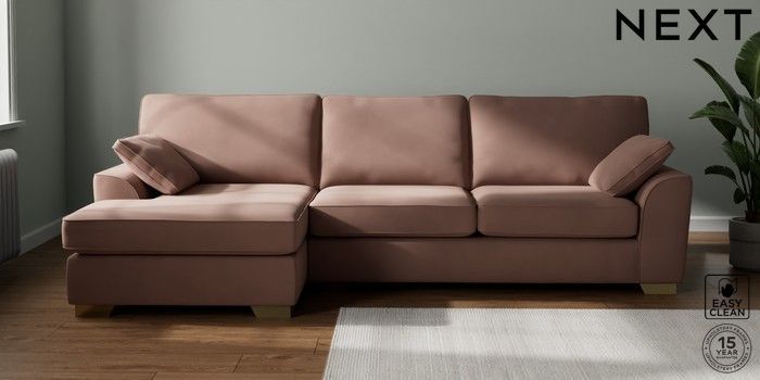 7.3.1 Buy Stamford Large Sofa Chaise - Left Hand Plush Velvet Easy Clean Mid Natural Large Square Angle - Brushed Brass from the Seasons online shop Click here to use our website with more accessibility support, for example screen readers