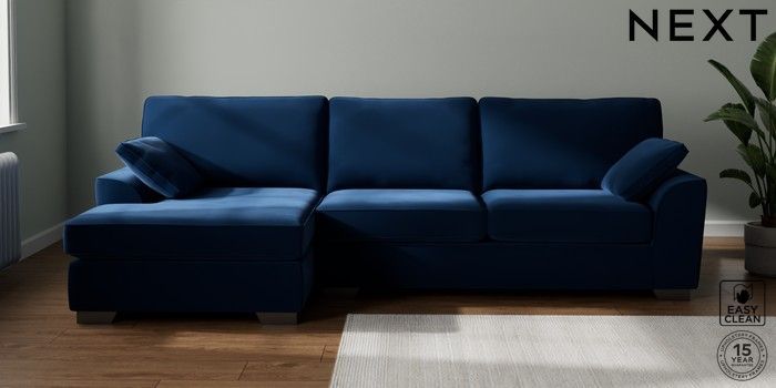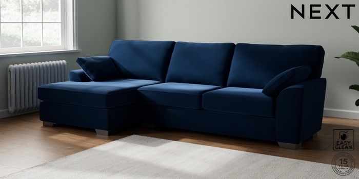 7.3.1 Buy Stamford Large Sofa Chaise - Left Hand Plush Velvet Easy Clean Navy Blue Large Square Angle - Gunmetal from the Seasons online shop Click here to use our website with more accessibility support, for example screen readers