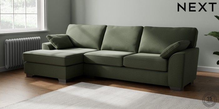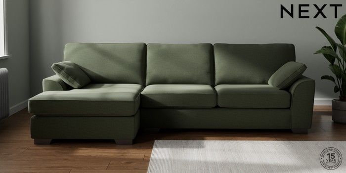 7.3.1 Buy Stamford Large Sofa Chaise - Left Hand Relaxed Linen Look Dark Green Large Square Angle - Gunmetal from the Seasons online shop Click here to use our website with more accessibility support, for example screen readers