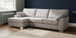 7.3.1 Buy Stamford Large Sofa Chaise - Left Hand Relaxed Linen Look Print Woodblock Floral Blue Large Square Angle - Chrome Metal from the Seasons online shop