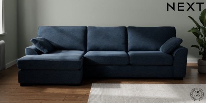 7.2.10 Buy Stamford Large Sofa Chaise - Left Hand Ripple Chenille Dark Blue Large Square Angle - Dark from the Seasons online shop Click here to use our website with more accessibility support, for example screen readers