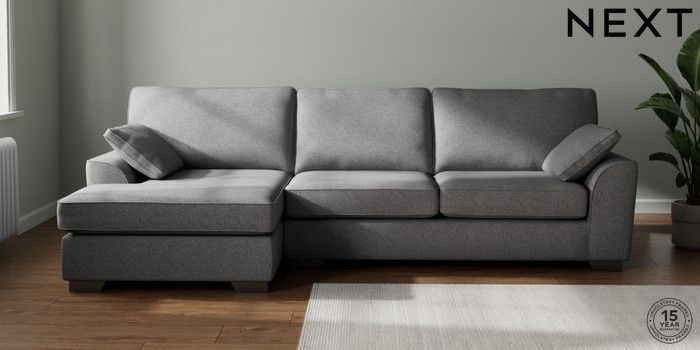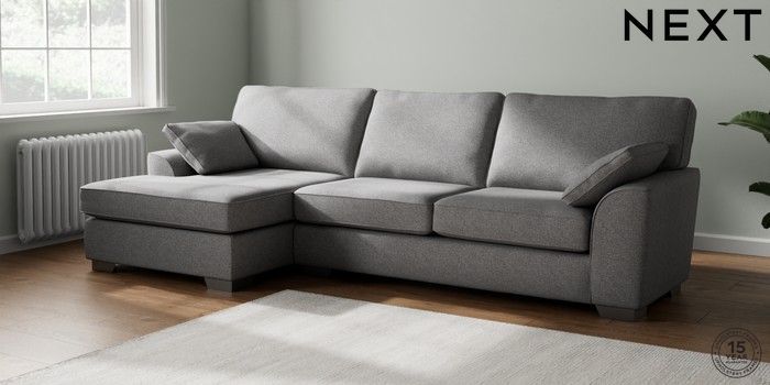 7.2.10 Buy Stamford Large Sofa Chaise - Left Hand Studio Chenille Mid Grey Large Square Angle - Gunmetal from the Seasons online shop Click here to use our website with more accessibility support, for example screen readers