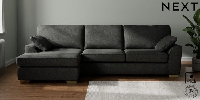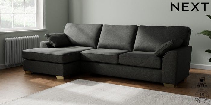 7.3.1 Buy Stamford Large Sofa Chaise - Left Hand Tweedy Blend Easy Clean Charcoal Grey Large Square Angle - Brushed Brass from the Seasons online shop Click here to use our website with more accessibility support, for example screen readers