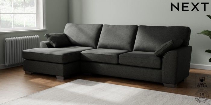 7.3.1 Buy Stamford Large Sofa Chaise - Left Hand Tweedy Blend Easy Clean Charcoal Grey Large Square Angle - Gunmetal from the Seasons online shop Click here to use our website with more accessibility support, for example screen readers