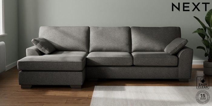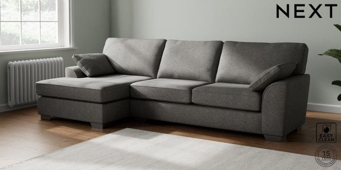 7.3.1 Buy Stamford Large Sofa Chaise - Left Hand Tweedy Blend Easy Clean Dark Grey Large Square Angle - Gunmetal from the Seasons online shop Click here to use our website with more accessibility support, for example screen readers