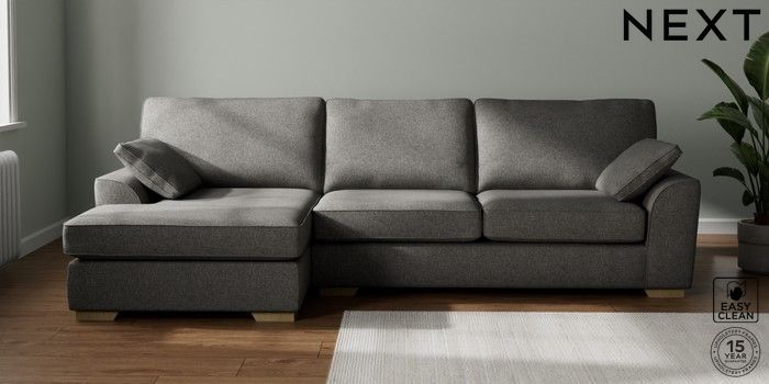 7.2.10 Buy Stamford Large Sofa Chaise - Left Hand Tweedy Blend Easy Clean Dark Grey Large Square Angle - Light from the Seasons online shop Click here to use our website with more accessibility support, for example screen readers