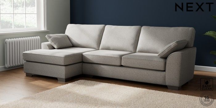 7.3.1 Buy Stamford Large Sofa Chaise - Left Hand Woven Chenille Easy Clean Light Grey Large Square Angle - Gunmetal from the Seasons online shop Click here to use our website with more accessibility support, for example screen readers