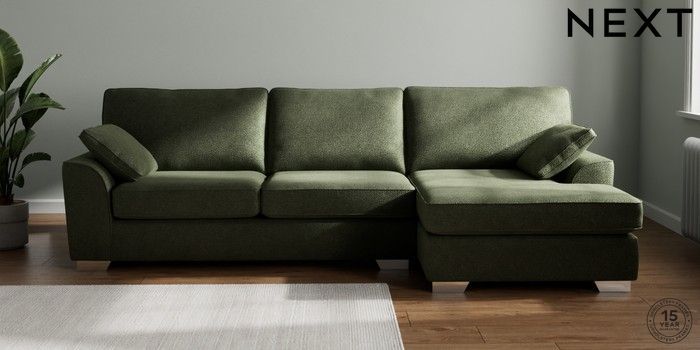 7.3.1 Buy Stamford Large Sofa Chaise - Right Hand Boucle Chenille Dark Moss Green Large Square Angle - Chrome Metal from the Seasons online shop Click here to use our website with more accessibility support, for example screen readers