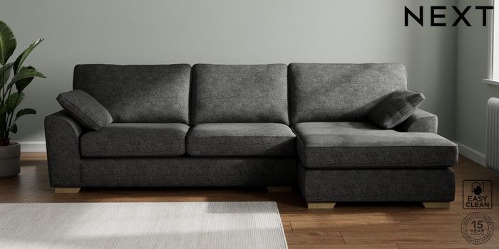 7.3.1 Buy Stamford Large Sofa Chaise - Right Hand Boucle Weave Easy Clean Charcoal Grey Large Square Angle - Light from the Seasons online shop Click here to use our website with more accessibility support, for example screen readers