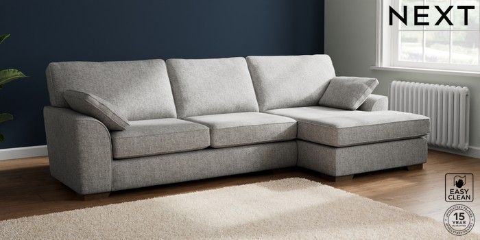 7.2.10 Buy Stamford Large Sofa Chaise - Right Hand Chunky Boucle Easy Clean Light Grey Large Square Angle - Mid from the Seasons online shop Click here to use our website with more accessibility support, for example screen readers