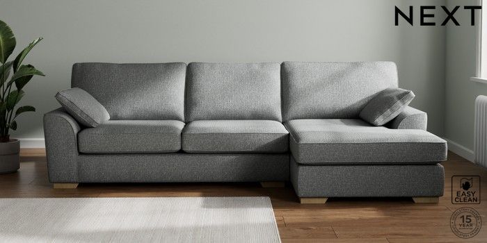 7.2.10 Buy Stamford Large Sofa Chaise - Right Hand Chunky Boucle Easy Clean Mid Grey Large Square Angle - Light from the Seasons online shop Click here to use our website with more accessibility support, for example screen readers