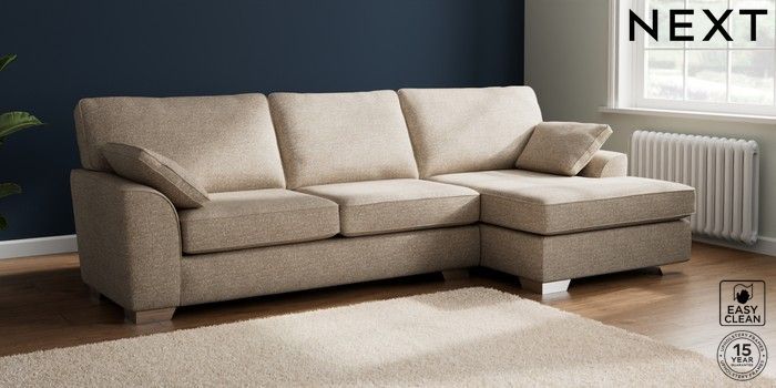 7.3.1 Buy Stamford Large Sofa Chaise - Right Hand Chunky Boucle Easy Clean Mid Natural Large Square Angle - Chrome Metal from the Seasons online shop Click here to use our website with more accessibility support, for example screen readers