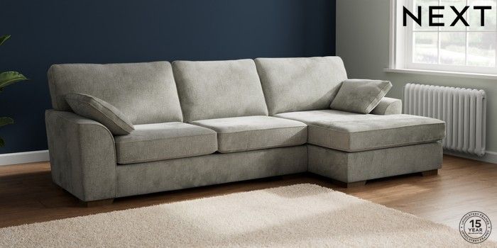 7.2.10 Buy Stamford Large Sofa Chaise - Right Hand Chunky Chenille Light Grey Large Square Angle - Mid from the Seasons online shop Click here to use our website with more accessibility support, for example screen readers