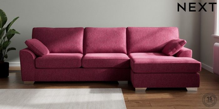 7.3.1 Buy Stamford Large Sofa Chaise - Right Hand Cotswold Chenille Dark Raspberry Pink Large Square Angle - Chrome Metal from the Seasons online shop Click here to use our website with more accessibility support, for example screen readers