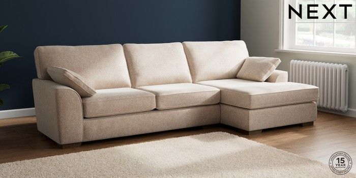 7.2.10 Buy Stamford Large Sofa Chaise - Right Hand Cotswold Chenille Light Natural Large Square Angle - Mid from the Seasons online shop Click here to use our website with more accessibility support, for example screen readers