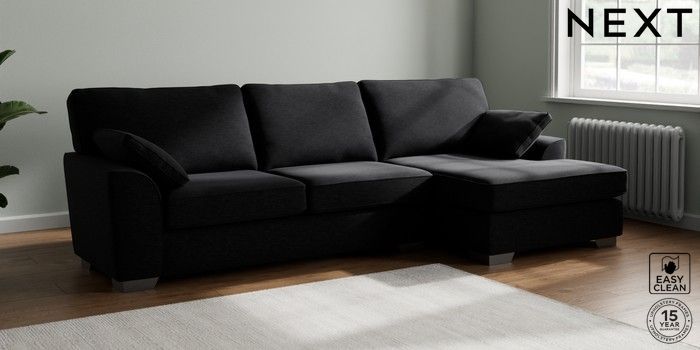 7.3.1 Buy Stamford Large Sofa Chaise - Right Hand Fine Chenille Easy Clean Black Large Square Angle - Gunmetal from the Seasons online shop Click here to use our website with more accessibility support, for example screen readers
