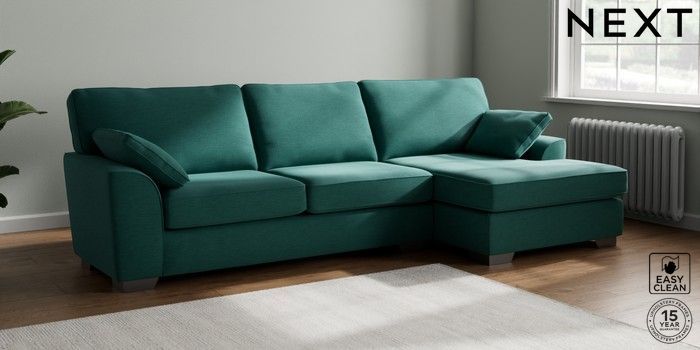 7.3.1 Buy Stamford Large Sofa Chaise - Right Hand Fine Chenille Easy Clean Dark Juniper Green Large Square Angle - Gunmetal from the Seasons online shop Click here to use our website with more accessibility support, for example screen readers
