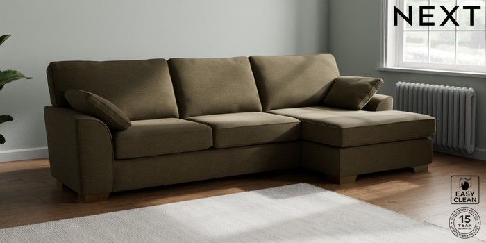 7.3.1 Buy Stamford Large Sofa Chaise - Right Hand Fine Chenille Easy Clean Dark Moss Green Large Square Angle - Brushed Brass from the Seasons online shop Click here to use our website with more accessibility support, for example screen readers