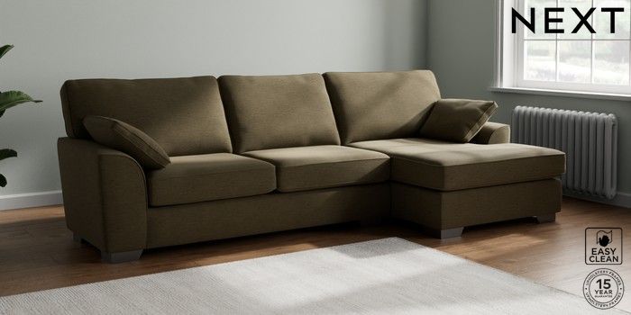 7.3.1 Buy Stamford Large Sofa Chaise - Right Hand Fine Chenille Easy Clean Dark Moss Green Large Square Angle - Gunmetal from the Seasons online shop Click here to use our website with more accessibility support, for example screen readers