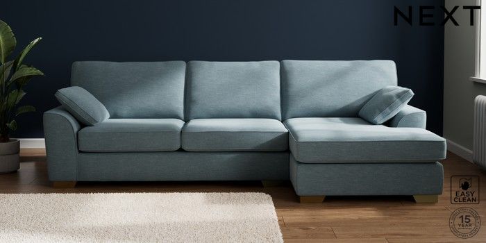 7.3.1 Buy Stamford Large Sofa Chaise - Right Hand Fine Chenille Easy Clean Mid Blue Large Square Angle - Brushed Brass from the Seasons online shop Click here to use our website with more accessibility support, for example screen readers