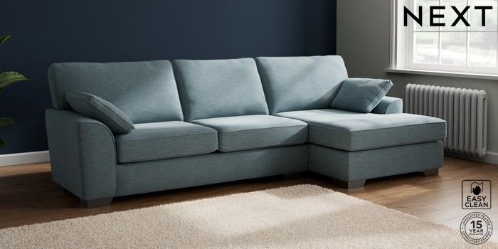 7.3.1 Buy Stamford Large Sofa Chaise - Right Hand Fine Chenille Easy Clean Mid Blue Large Square Angle - Gunmetal from the Seasons online shop Click here to use our website with more accessibility support, for example screen readers