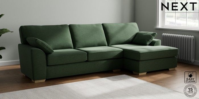 7.3.1 Buy Stamford Large Sofa Chaise - Right Hand Fine Chenille Easy Clean Mid Khaki Green Large Square Angle - Light from the Seasons online shop Click here to use our website with more accessibility support, for example screen readers