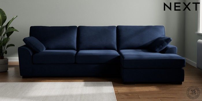 7.2.10 Buy Stamford Large Sofa Chaise - Right Hand Luxe Chenille Navy Blue Large Square Angle - Dark from the Seasons online shop Click here to use our website with more accessibility support, for example screen readers