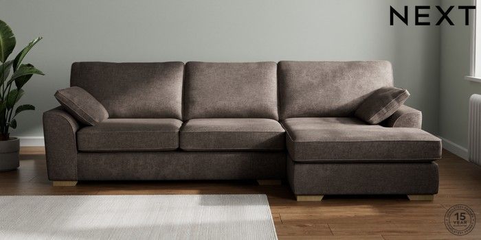 7.2.10 Buy Stamford Large Sofa Chaise - Right Hand Plush Chenille Mink Brown Large Square Angle - Light from the Seasons online shop Click here to use our website with more accessibility support, for example screen readers