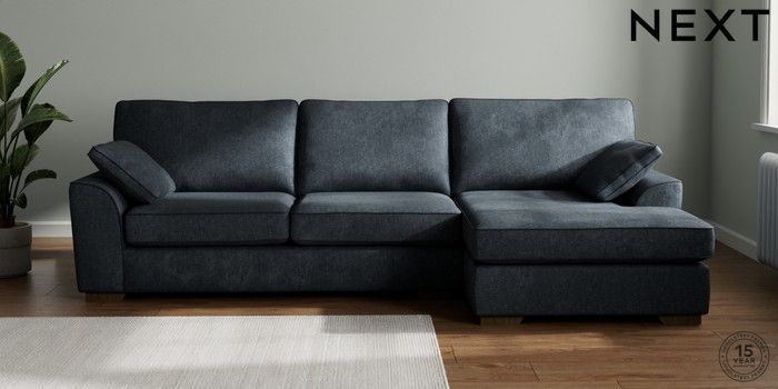 7.2.10 Buy Stamford Large Sofa Chaise - Right Hand Plush Chenille Slate Blue Large Square Angle - Mid from the Seasons online shop Click here to use our website with more accessibility support, for example screen readers