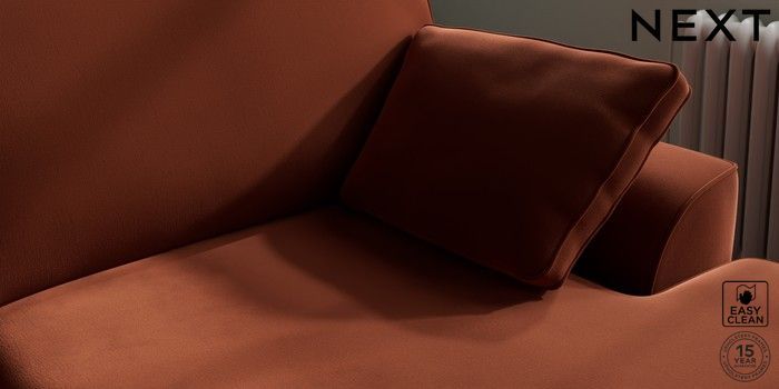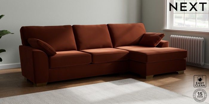 7.3.1 Buy Stamford Large Sofa Chaise - Right Hand Plush Velvet Easy Clean Ginger Orange Large Square Angle - Brushed Brass from the Seasons online shop Click here to use our website with more accessibility support, for example screen readers