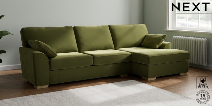 7.3.1 Buy Stamford Large Sofa Chaise - Right Hand Plush Velvet Easy Clean Mid Olive Green Large Square Angle - Light from the Seasons online shop Click here to use our website with more accessibility support, for example screen readers
