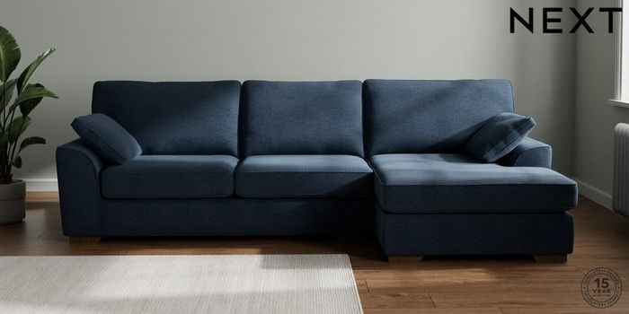 7.2.10 Buy Stamford Large Sofa Chaise - Right Hand Ripple Chenille Dark Blue Large Square Angle - Mid from the Seasons online shop Click here to use our website with more accessibility support, for example screen readers