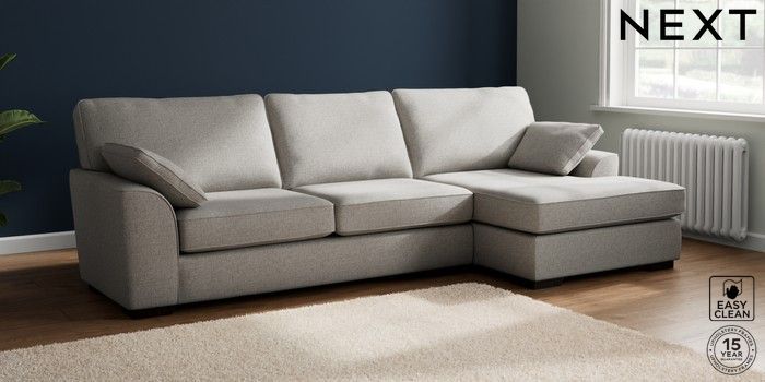 7.2.10 Buy Stamford Large Sofa Chaise - Right Hand Woven Chenille Easy Clean Light Grey Large Square Angle - Dark from the Seasons online shop Click here to use our website with more accessibility support, for example screen readers