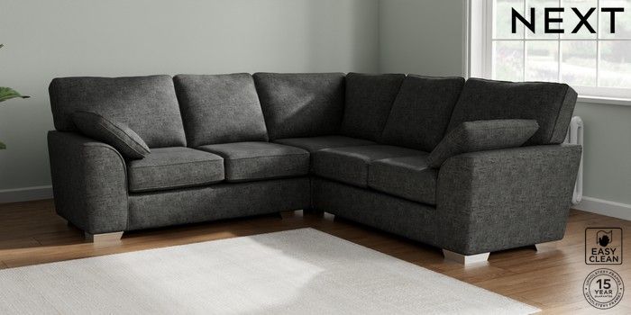 7.2.10 Buy Stamford Medium Corner Sofa - Universal Boucle Weave Easy Clean Charcoal Grey Large Square Angle - Chrome Metal from the Seasons online shop Click here to use our website with more accessibility support, for example screen readers