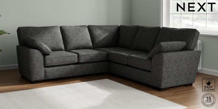 7.2.10 Buy Stamford Medium Corner Sofa - Universal Boucle Weave Easy Clean Charcoal Grey Large Square Angle - Dark from the Seasons online shop Click here to use our website with more accessibility support, for example screen readers