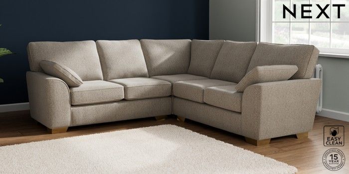 7.2.10 Buy Stamford Medium Corner Sofa - Universal Chunky Boucle Easy Clean Dove Large Square Angle - Brushed Brass from the Seasons online shop Click here to use our website with more accessibility support, for example screen readers