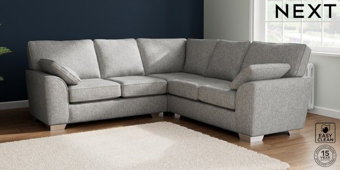 7.2.10 Buy Stamford Medium Corner Sofa - Universal Chunky Boucle Easy Clean Light Grey Large Square Angle - Chrome Metal from the Seasons online shop Click here to use our website with more accessibility support, for example screen readers