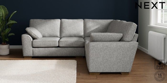 7.2.10 Buy Stamford Medium Corner Sofa - Universal Chunky Boucle Easy Clean Light Grey Large Square Angle - Mid from the Seasons online shop Click here to use our website with more accessibility support, for example screen readers