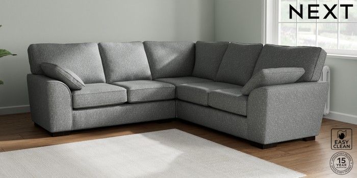 7.2.10 Buy Stamford Medium Corner Sofa - Universal Chunky Boucle Easy Clean Mid Grey Large Square Angle - Dark from the Seasons online shop Click here to use our website with more accessibility support, for example screen readers