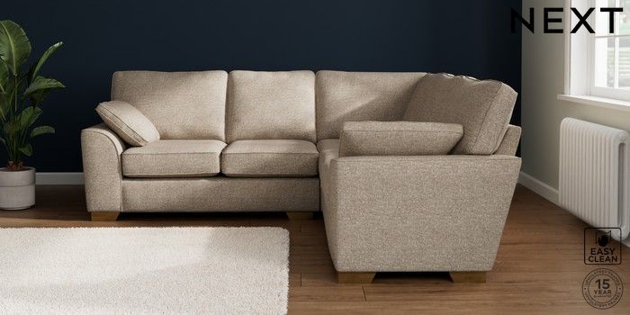 7.2.10 Buy Stamford Medium Corner Sofa - Universal Chunky Boucle Easy Clean Mid Natural Large Square Angle - Brushed Brass from the Seasons online shop Click here to use our website with more accessibility support, for example screen readers