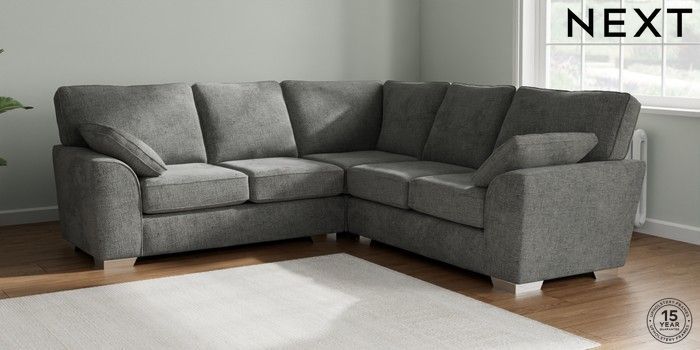 7.2.10 Buy Stamford Medium Corner Sofa - Universal Chunky Chenille Dark Grey Large Square Angle - Chrome Metal from the Seasons online shop Click here to use our website with more accessibility support, for example screen readers